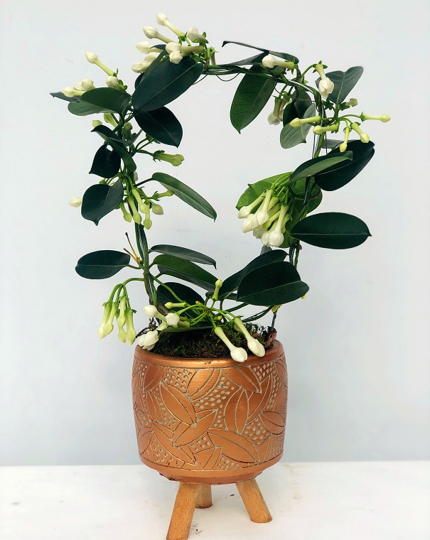 Yasemin çiçeği olarak da bilinen harika kokusu güzel çiçekleri ve oval formu sayesinde favori bir saksı çiçeği çeşididir. Bu tam gövdeli, tam figürlü bitki tropikal yağmur ormanlarından gelir, bu nedenle yapraklarını zaman zaman su püskürtmeniz çok minnettar olacaktır.