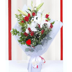 Aşk meleği Kırmızı Gül Lilyum Buketi