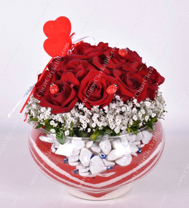 Aşkın Ateşi olarak adlandırdığımız çiçeklerden oluşan bu aranjman ile sevdiklerinize tutkuyu, sevgiyi mutluluğu ve en güzel kokuları gönderin. Kırmızı gül sevdiklerinize sunduğu zarafet ve güven duygusunun yanında ugur böceklerinin o muhteşem görüntüsü ile onları ne kadar çok değer verdiğinizi ve sevdiğinizi gösterin.