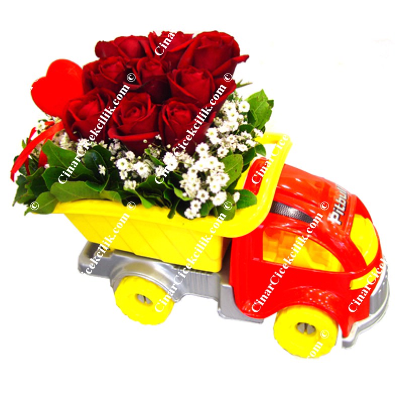 • 11 Adet Kırmızı Gül• Sevimli Oyuncak Ayı• Örme Sepet• Gelin Çiçekleri (Cipso)