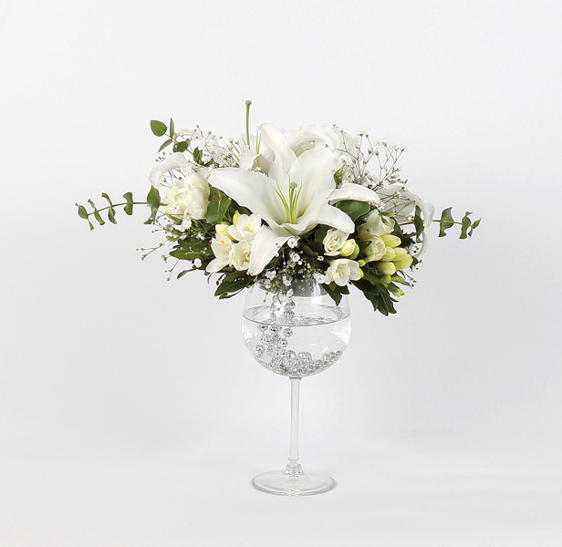 ‘Beyaz Duygu’ Kadehte Kokulu Çiçek Aranjmnı