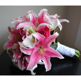 Beyaz Gala Pembe Lilyum Gelin Buketleri