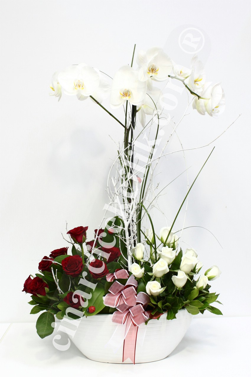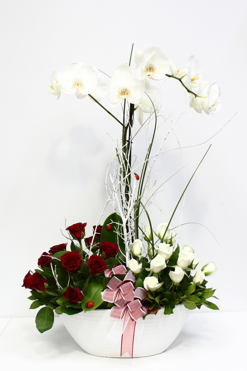 Beyaz Gül, Orkide Kırmızı Gül Aranjmanı