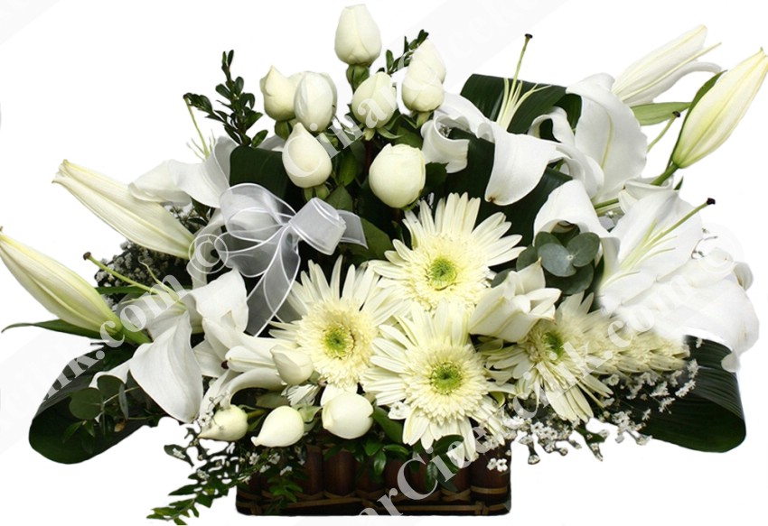 ‘Beyaz Sevgi’ Lilyum ve Gül Çiçek Aranjmanı. Yaşadığınız bu dünyada seviyor ve seviniyorsanız sizden daha mutlu insan olamaz. İşte bu Sevgiyi bazen kelimelerde ve sözcüklerde ararız. Sözcüklerin bittiği yerde sevdiklerinize en güzel hediye şık vazo içerisinde Lilyum, 15 adet beyaz gül ve gerbera çiçeklerinden oluşan şık bir aranjmandır.