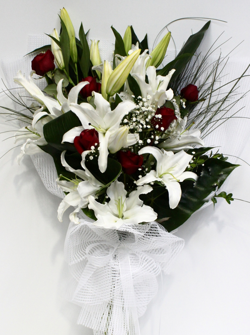 Beyaz kokulu lilyum çiçeklerinin ihtişamı ile bu karşı konulmaz özelliği beyaz kırmızı gül ile bir adım yukarı taşıyın. Bukette kullanılan bu iki özelliği en güzel biçimde gözler önüne seren bu özel buket özel günlerde çiçek gönderimi için birinci kalite lilyum ve kırmızı gül buketi, sevdiklerinize buket siparişi verip, buket gönder menin keyfe dönüştüğü çiçekçi.