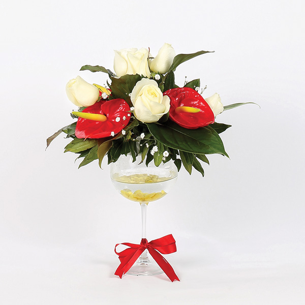 ‘Bir Kadeh Sevgi’ Beyaz Gül Antoryum Aranjmanı. Yaşadığınız bu dünyada seviyor ve seviniyorsanız sizden daha mutlu insan olamaz. İşte bu Sevgiyi bazen kelimelerde ve sözcüklerde ararız. Sözcüklerin bittiği yerde sevdiklerinize en güzel hediye şık kadeh içerisinde Antorium , beyaz Gül çiçeklerinden oluşan şık bir aranjmandır.
