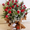 Kahverengi sarım içinde 23 adet kırmızı gül buketi. Birinci kalite kırmızı güller ile hazırlanmış bu büyüleyici gül aranjmanı, sevdiklerinize hediye ederek onlara güzel bir sürpriz yapabilirsiniz.
