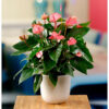 Büyük Antorium muhteşem yaprakları ve çok çarpıcı güzel çiçekleri güzel bir hediyedir. Orijinal bir tür olan bu bitkiler çok talep ediyorlar çünkü oda koşullarında yaşayan oldukça nadirdir bir bitkidir. Alt ve melez birçok türü olan bu çiçeklerdir. Şampiyon pembe bugün sevdikleriniz için güzel bir hediye ve ev bitkisi olarak uzun yıllar yaşar Pembe şampiyon dinç yeşil, ok şeklinde yaprakları ve büyük, güçlü pembe, parlak çiçekleri vardır. Anthurium bitkileri parlak ve sıcak bir yeri tercih eder, ama lütfen doğrudan güneş ışığı maruz bırakmayın. Her zaman çiçeklidir. İdeal koşullarda, antoryum tüm yıl boyunca çiçek açar.