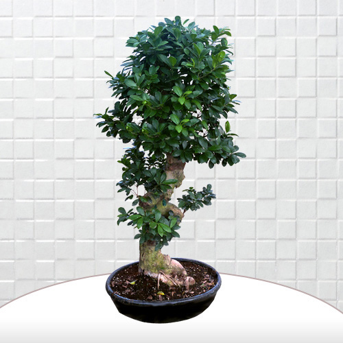 Çin’den ithal edilen bu bonzai bitkisi, 110cm yüksekliğinde Golden Gate Ficus bonsai titizlikle eğitilmiştir , 10 yıl boyunca büyütülen ayrı ayrı gövde eğik bir şekil alan ağac. Bakımı kolay ve ışık koşullarında değişik başarılar göstermektedir. En güzel ortamı sağlayarak mükemmel bonsai ulaşın. Tüm bonzai çeşitleri için, parlak yada dolaylı ışık tercih etmeniz bonzai için en sağlıklısı olacaktır.