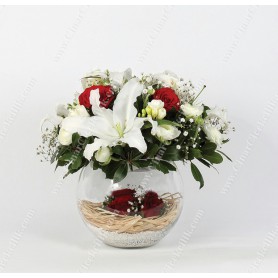 ‘Büyülü Rüya’ Kırmızı Gül Ve Lilyum Çiçekleri. Yaşadığınız bu dünyada seviyor ve seviniyorsanız sizden daha mutlu insan olamaz. İşte bu Sevgiyi bazen kelimelerde ve sözcüklerde ararız. Sözcüklerin bittiği yerde sevdiklerinize en güzel hediye şık cam fanus içerisinde beyaz Lilyum, 7 adet kırmızı gül çiçeklerinden oluşan şık bir aranjmandır.