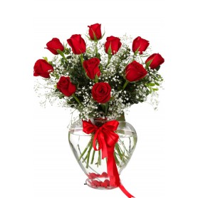11 Beyaz Gül Cam Vazoda, Birinci sınıf kalitede çiçekler kullanılmaktadır.