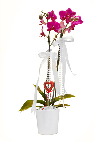 Pembe Orkide, çift kök beyaz orkideden oluşan son derece şık bir saksı çiçeğidir. Kullanılan saksılar 15 cm ile 20 cm çapında olarak değişiklik göstermektedir. beyaz orkideler , ortalama 70-80 cm boyunda olup özel olarak servis araçları ile taşınmaktadır. En ucuz fiyat garantisi ile sunulan bu çift dal orkide ile sevdiklerinize unutulmaz bir an yaşatacaksınız.