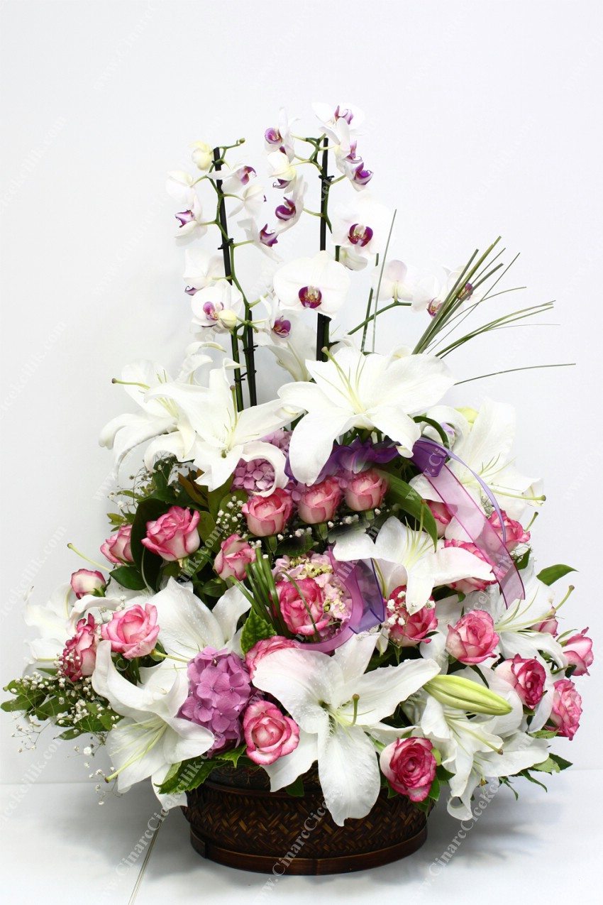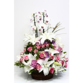 ‘En Değerli ‘ Orkide Pembe Gül Lilyum Aranjmanı. Yaşadığınız bu dünyada seviyor ve seviniyorsanız sizden daha mutlu insan olamaz. İşte bu Sevgiyi bazen kelimelerde ve sözcüklerde ararız. Sözcüklerin bittiği yerde sevdiklerinize en güzel hediye öreme sepet içerisinde ikili orkide, lilyum ve kokulu lilyum ve 21 adet pembe gül çiçeklerinden oluşan şık bir aranjmandır.