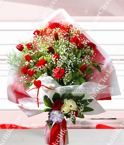 Kırmızı gülün ihtişamı ile bu karşı konulmaz özelliği kırmızı beyaz sarım tül ile bir adım yukarı taşıyın. Bukette kullanılan bu iki özelliği en güzel biçimde gözler önüne seren bu özel buket özel günlerde çiçek gönderimi için birinci kalite 21 adet kırmızı 2 adet beyaz gül, sevdiklerinize buket siparişi verip, buket gönder menin keyfe dönüştüğü çiçekçi.