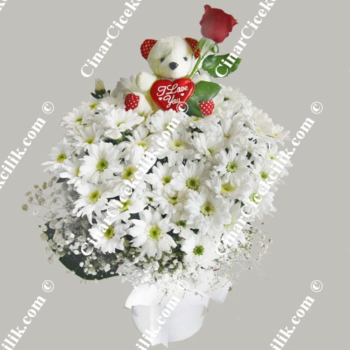 Kırmızı gül çiçeklerinin ihtişamı ile bu karşı konulmaz güzelliğe eşilik eden oyuncak ayı ile bu güzelliği en güzel biçimde gözler önüne seren bu özel oyuncaklı çiçek özel günlerinizde oyuncaklı çiçek siparişi için birinci kalite çiçekler kullanılarak, ayıcıklı gül siparişi verip, oyuncaklı gül gönder menin keyfe dönüştüğü çiçekçi.