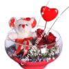 Cam Vazoda Kırmızı Gül ve Oyuncak Ayı