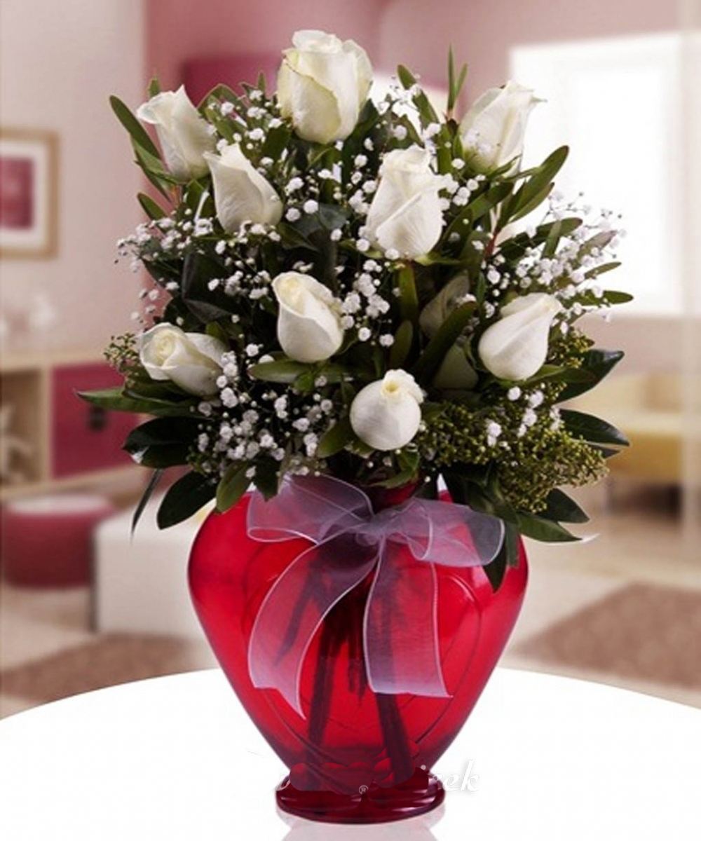 O, kalbinizin diğer yarısı ve sizi tamamlayan … sevgilinizin yüzünü gülümsetebilmek kadar güzel bir duygu yok. Sevgilinize bu güzel 9 adet beyaz gülden oluşan aranjmanla yüzünü güldürmek istermisiniz. Kalp cam vazoda cipsolarla süslenmiş 9 Adet beyaz ile sevgilinize sihirli bir an yaşatın.