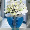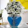 • Papatya • Cipsofilya • Mavi Kalp Cam Vazo