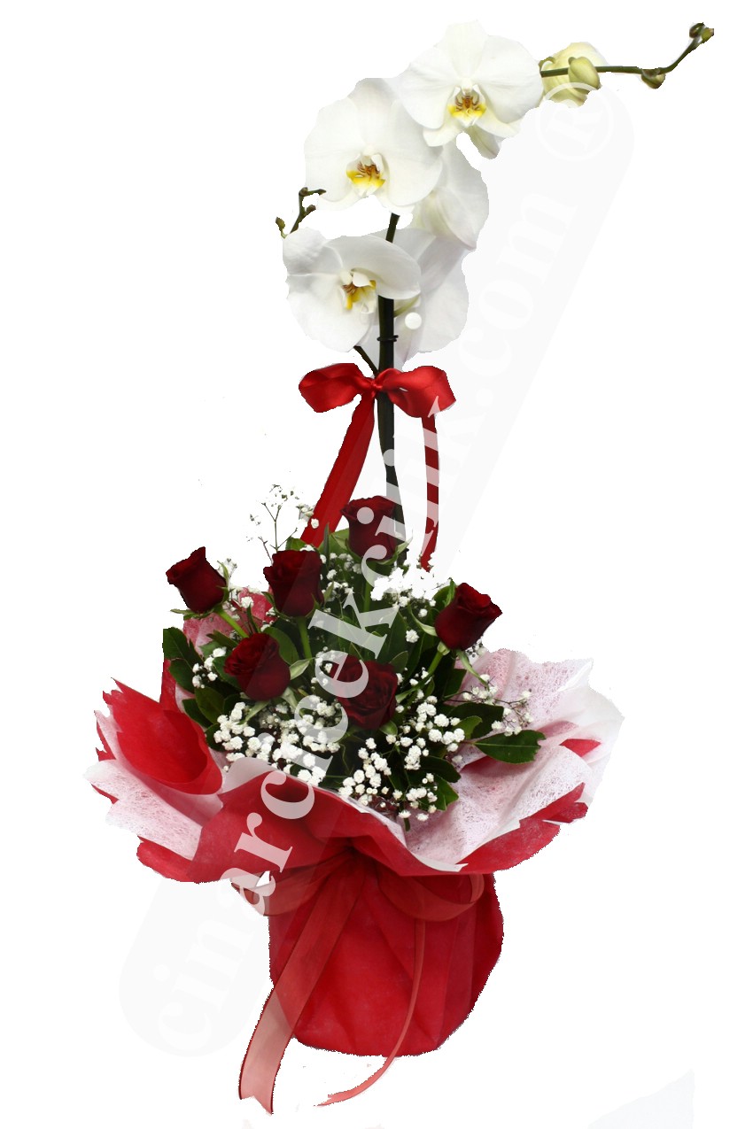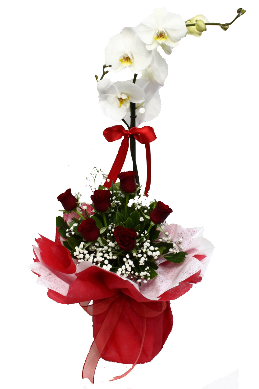 Dünyanın en sevilen çiçekleri arasında birinci sırada olan orkide çiçekleri ile sevdiklerinize inanılmaz bir an yaşatmak ister misiniz? Saksıda beyaz Orkide ve 7 adet kırmızı güller görenleri kendine hayran bırakacaktır.