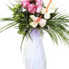 Seramik Beyaz Vazoda Pembe Gül ve Antorium
