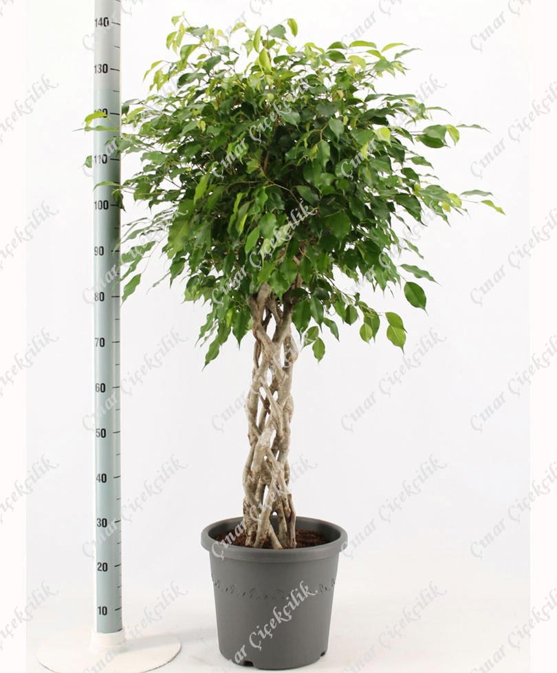 Çarpıcı bir ağaç olan Ficus Benjamin koyu yeşil yaprakları vardır! Yapraklar büyük ferahlatıcı bir renk kombinasyonu oluşturuyor. Oturma odanızda, ya da ofis içinde parlak bir noktada bu bitki göz alıcı olacaktır. Yaklaşık Yükseklik 150Cm