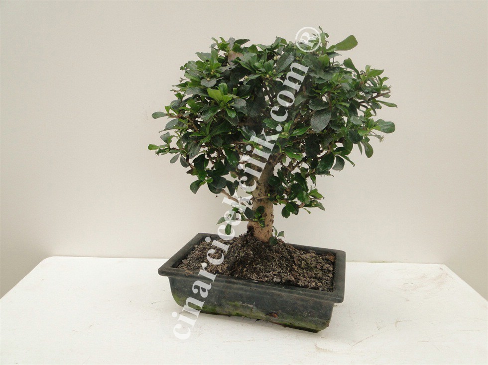 Çin’den ithal edilen bu bonzai bitkisi, 30cm yüksekliğinde Carmona bonsai titizlikle eğitilmiştir , 10 yıl boyunca büyütülen ayrı ayrı gövde eğik bir şekil alan ağac. Bakımı kolay ve ışık koşullarında değişik başarılar göstermektedir. En güzel ortamı sağlayarak mükemmel bonsai ulaşın. Tüm bonzai çeşitleri için, parlak yada dolaylı ışık tercih etmeniz bonzai için en sağlıklısı olacaktır.