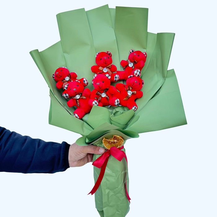 Bu sevimli pembe etekli ayıcık buketi, 9 adet şirin ayıcıktan oluşmaktadır. Özel günlerde, doğum günlerinde, sevgililer gününde veya anlamlı anlarda sevdiklerinize hediye etmek için ideal bir seçimdir. Ayıcıkların pembe etekli tasarımı, bu buketi hem çocuklar hem de yetişkinler için çekici kılar. Dekoratif amaçlı kullanıma da uygun olan bu ürün, yatak odası, oturma odası veya ofis masanızı renklendirebilir. Uzun ömürlü ve kaliteli malzemelerden üretilmiştir.