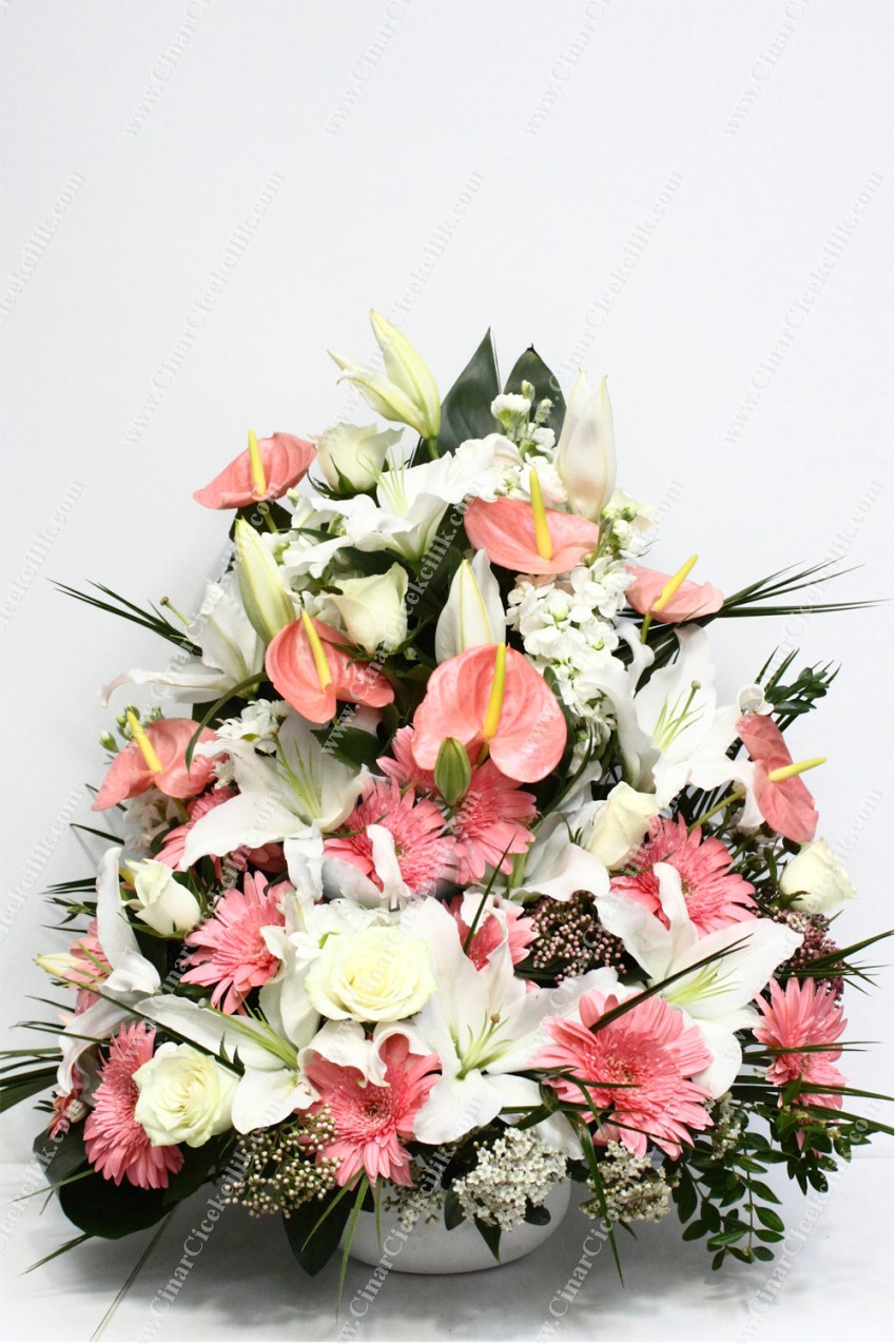 * Çiçek gönder mede, Çiçek tasarımlarımızda kullandığımız yan ürün ve malzemelerde (kurdela, çakıl taşları, vazo vb.), mevsime ve stok durumuna göre değişiklikler gösterebilir.