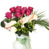 Vazoda Pembe Gül ve Antorium