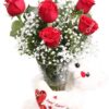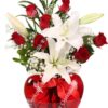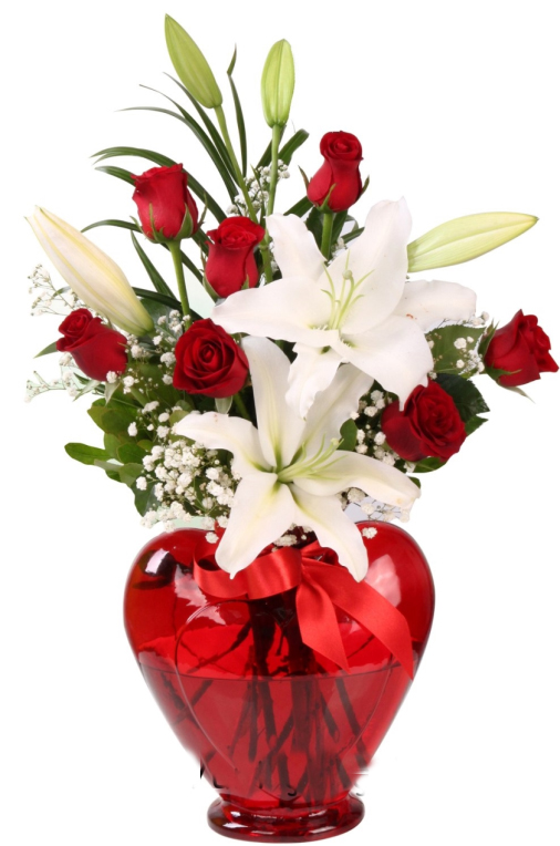 Kalp vazo içinde 7 adet kırmızı gül, kokulu lilyum, aranjmanı. Birinci kalite kırmızı gül, lilyum çiçekleri ile hazırlanmış bu büyüleyici kalp vazoda kırmızı gül aranjmanı, sevdiklerinize hediye ederek onlara güzel bir sürpriz yapabilirsiniz.