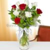 Romantik Kalple Vazoda 9 Adet Kırmızı Beyaz Gül