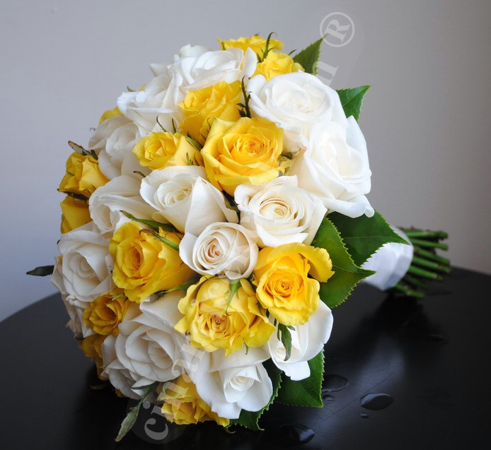 Güzel bir hayale hazır olun! Mutluluğu en saf hali ile sizlerin en özel günlerinizde yanınızda olmaktan mutluluk duyarız. Birinci sınıf beyaz, sarı gül çiçekleri eşliğinde özel olarak hazırlanmış gelin buketi.