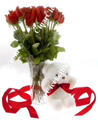 • 21 Adet Kırmızı Gül• Sevimli Oyuncak Ayı• Yeşillik• Gelin Çiçekleri (Cipso)