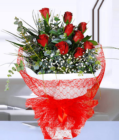 Kırmızı ve beyaz tülleri içinde 9 adet kırmızı gül buketi. Birinci kalite kırmızı güller ile hazırlanmış bu büyüleyici gül aranjmanı, sevdiklerinize hediye ederek onlara güzel bir sürpriz yapabilirsiniz.