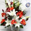 Muhteşem olarak adlandırdığımız çiçeklerden oluşan bu aranjman ile sevdiklerinize tutkuyu, sevgiyi mutluluğu ve en güzel kokuları gönderin. Kırmızı gül sevdiklerinize sunduğu zarafet ve güven duygusunun yanında kokulu lilyum, kırmızı gül, oyuncak ayı, nazar balonu ve antorium çiçeklerinin o muhteşem görüntüsü ile onları ne kadar çok değer verdiğinizi ve sevdiğinizi gösterin.