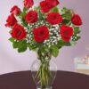 Silindir Cam Vazoda 11 Adet Kırmızı Gül