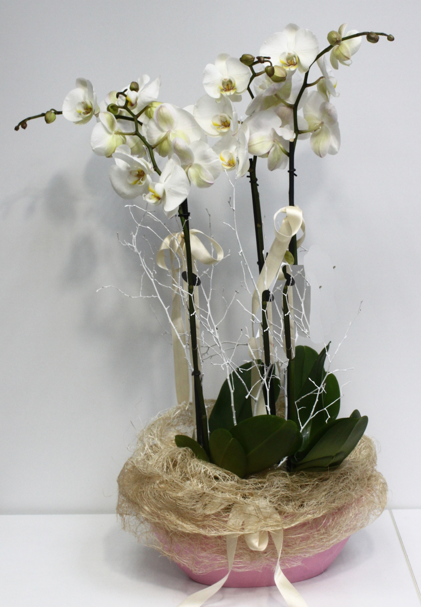 Beyaz Orkide üç kök beyaz orkideden oluşan son derece şık bir saksı çiçeğidir. Üç kök Orkideler ortalama 70-80 cm boyunda olup özel olarak servis araçları ile taşınmaktadır. En ucuz fiyat garantisi ile sunulan bu tek dal orkide ile sevdiklerinize unutulmaz bir an yaşatacaksınız.
