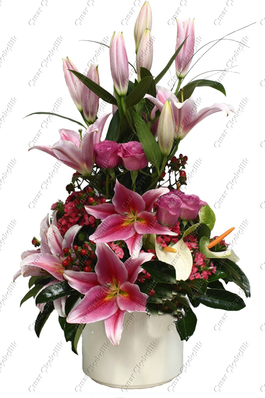 Aranjman çiçekte bulunan lilyumlar. Birinci sınıf kalitede lilyum kullanılmaktadır.