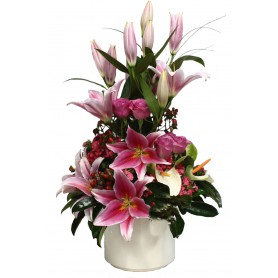 ‘ Vazgeçilmez ‘ Pembe Lilyum Gül Aranjmani. Yaşadığınız bu dünyada seviyor ve seviniyorsanız sizden daha mutlu insan olamaz. İşte bu Sevgiyi bazen kelimelerde ve sözcüklerde ararız. Sözcüklerin bittiği yerde sevdiklerinize en güzel hediye şık vazo içerisinde pembe kokulu lilyum çiçeklerinden oluşan şık bir aranjmandır.