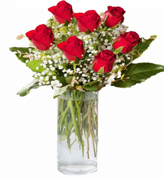 Vazoda 7 Adet Kırmısı Gül